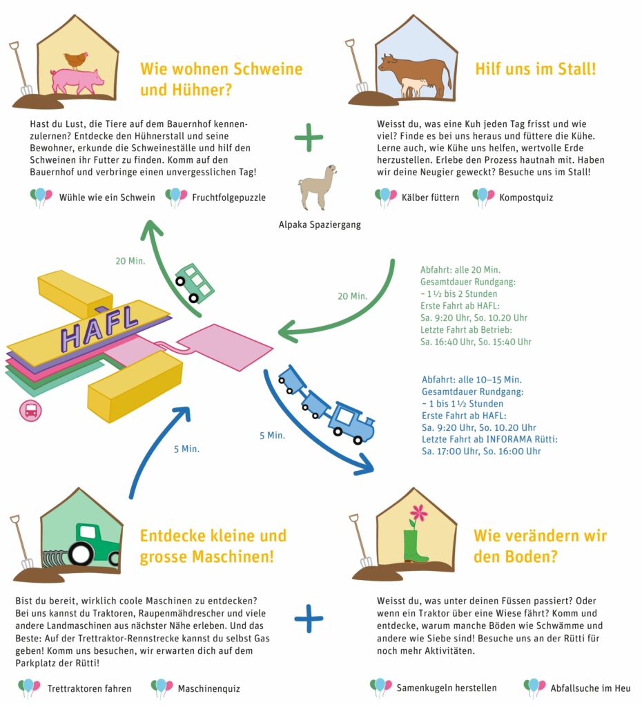 Neben zahlreichen Aktivitäten auf und um den Campus der HAFL und dem unmittelbar benachbarten Inforama Rütti, fährt während der Hoftour ein Postautos direkt einen in der Nähe liegenden Bauernhof an, welcher zu unserem Thema eine interessante Geschichte zu erzählen hat.